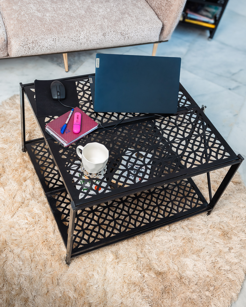 A high-quality, laser-engraved folding metal table.